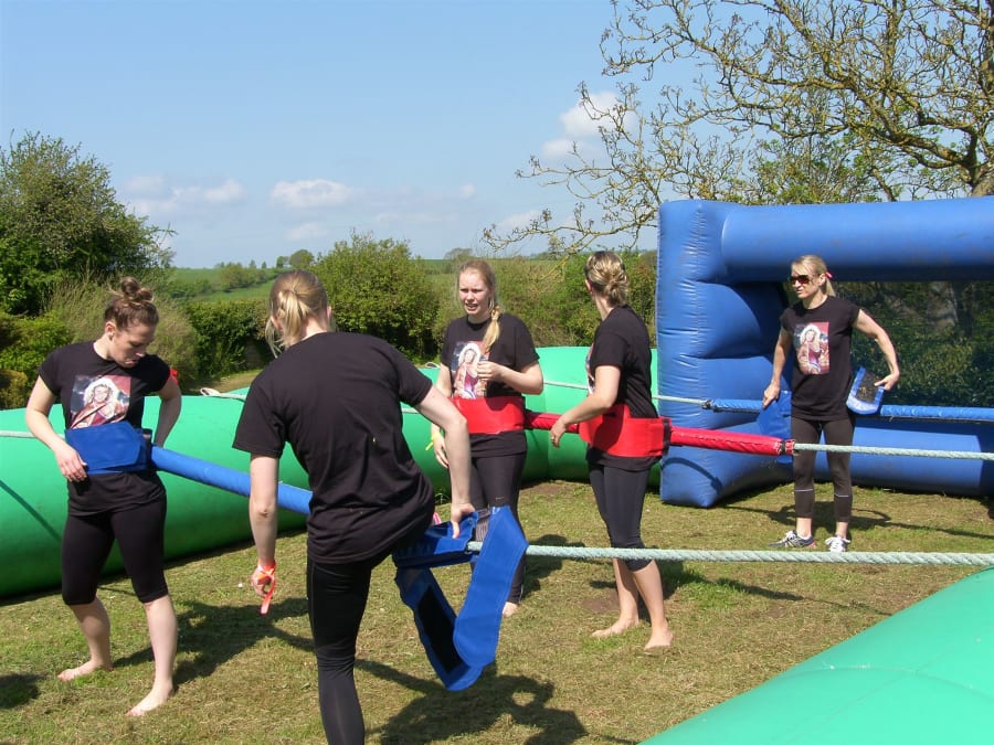 Swapping plastic players for real life ones in this fun and exhilarating game of Human Table Football!! As two teams of five go head to head in this huge 40’x20′ inflatable football pitch! Strapped to a pole with other players, you can expect plenty of fun and laughter as you try to navigate your way to scoring the first goal…. When one moves, everybody moves! Fun for all ages! This fantastic game is guaranteed to take the centre stage at any event, so grab your friends, your family, the hen or the stag and make memories you’ll never forget! (suitable for use on grass only)