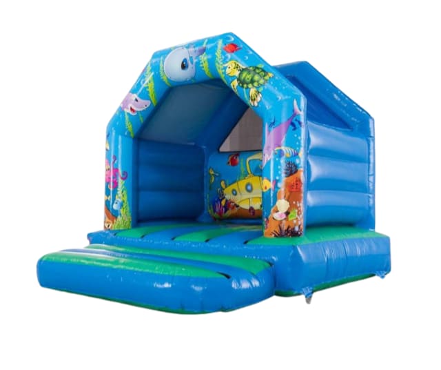 The perfect addition to your little one's birthday. Our fantastic Under the Sea themed artwork castle is the perfect children's party bouncer. Suitable for both indoor and outdoor use.