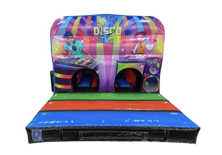 Bring instant energy with the 2 Piece Disco Assault Couse. This inflatable course mixes action and atmosphere. Flashing disco lights and built-in music turn an ordinary obstacle run into a full-on party. Perfect for birthdays, school events, community fairs, and corporate family days. Fun for kids and adults. Safe, social, and spectacular. 💃🕺